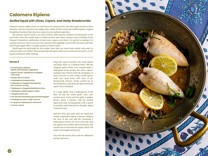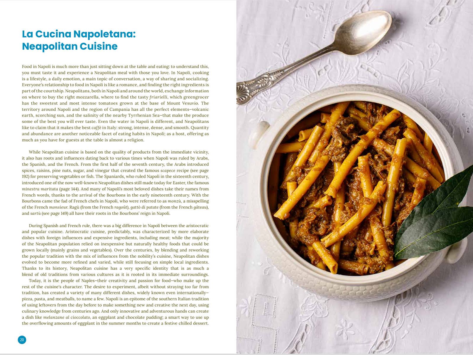 The book opens with Daniela’s memories and an exploration of la cultura napoletana, followed by an introduction to Naples’s culinary philosophy, her cooking school in Rome, and the essential pantry staples and tools that form the foundation of her cuisine.